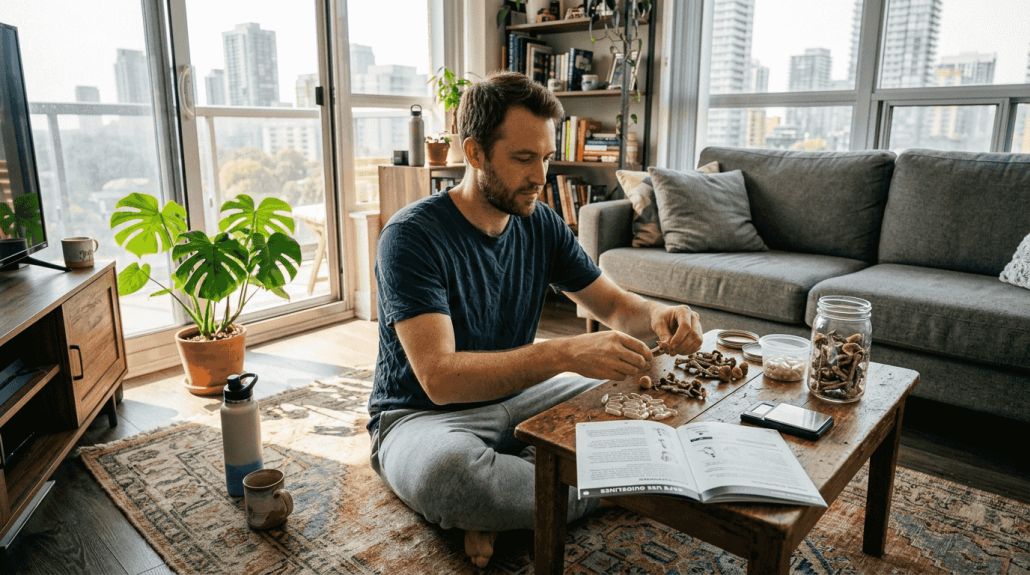 Conduct thorough mental health screening to identify contraindications like psychotic disorders or family history of schizophrenia. Choose an appropriate product and dose, starting with capsules at 0.5-1g or microdose range if unsure. Prepare your set and setting carefully by creating a comfortable, safe environment and arranging for a trusted sober sitter. Clear your schedule for the full day to avoid obligations during and after the experience. Our psilocybin experience preparation guide provides detailed first-timer checklists and tips for successful sessions.