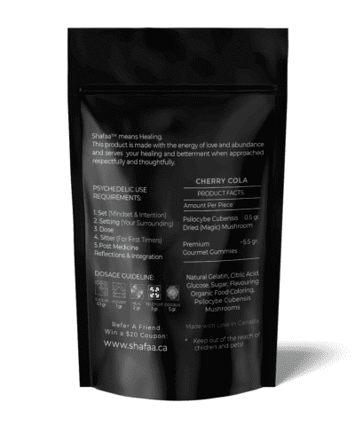 SHAFAA has worked extensively on these gummies and hired the most competitive pastry chef in the market to offer the best gummy’s quality, taste, smell, texture, potency and durability! They are designed to fully cover the mushroom’s flavour while you ingest edibles before your psychedelic journey.