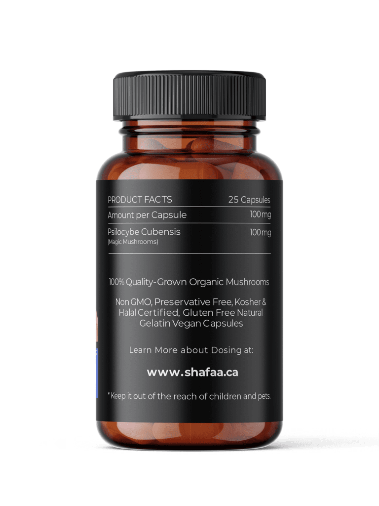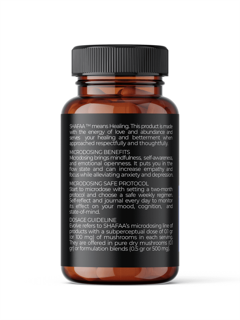Evolve your brain, power up your memory, boost your cognition back-end with SHAFAA’s Prime Magic Mushroom Microdosing Capsules! These sub-perceptional and non-psychoactive capsules consists of pure Golden Teacher Psilocybe Cubensis and are carefully produced for easier digestion of microdose psilocybin mushrooms. SHAFAA vegan microdosing prime capsules are packed in a small, convenient, resealable, and easy-to-travel pouch for those with an on-the-go and capacity-maximising lifestyle.